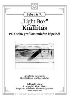 Pál Csaba festő- és grafikusművész kedd este nyílt Light box című tárlatával elkezdődött a 2010-es kiállítási idény a Wekerlei Társaskör Egyesület Kós Károly téri galériájában. A szkenner és számítógép segítségével készített grafikákat március elejéig láthatják az érdeklődők. Idén – más kiállítások mellett – még két elektrografikával foglalkozó művész alkotásaival találkozhat a közönség Wekerletelepen.