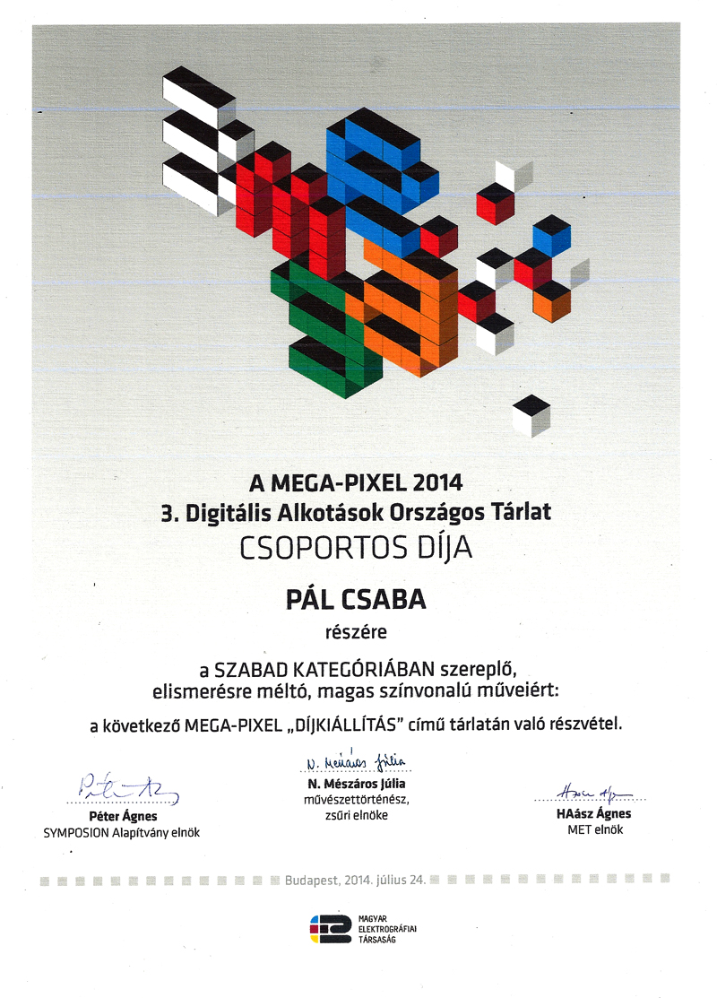 Pál Csaba DÍJ, MEGA-PIXEL 2014, M.E.T. A MEGA-PIXEL 2014 3.Digitális Alkotások Országos Tárlat Csoportos Díja Szabad Kategóriában Pál Csaba, A MEGA-PIXEL 2014 3.Digitális Alkotások Országos Tárlat Díja, Szabad Kategóriában Share this: Email a link to a friend (Opens in new window) Email Share on Facebook (Opens in new window) Facebook Share on Pinterest (Opens in new window) Pinterest Share on X (Opens in new window) X Print (Opens in new window) Print Share on Tumblr (Opens in new window) Tumblr Share on LinkedIn (Opens in new window) LinkedIn Share on instagram (Opens in new window) instagram More Share on X (Opens in new window) X Like Loading... Kapcsolódó bejegyzések Leave a comment Δ