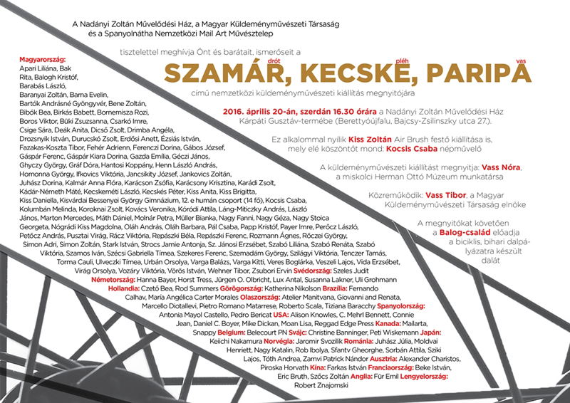 Pál Csaba, Szamár, Kecske, Paripa, mail art Pál Csaba, Szamár, Kecske, Paripa, 10×15 cm, vegyes papír, mail art Pál Csaba, Szamár, Kecske, Paripa, meghívó Share this: Email a link to a friend (Opens in new window) Email Share on Facebook (Opens in new window) Facebook Share on Pinterest (Opens in new window) Pinterest Share on X (Opens in new window) X Print (Opens in new window) Print Share on Tumblr (Opens in new window) Tumblr Share on LinkedIn (Opens in new window) LinkedIn Share on instagram (Opens in new window) instagram More Share on X (Opens in new window) X Like Loading... Kapcsolódó bejegyzések Leave a comment Δ