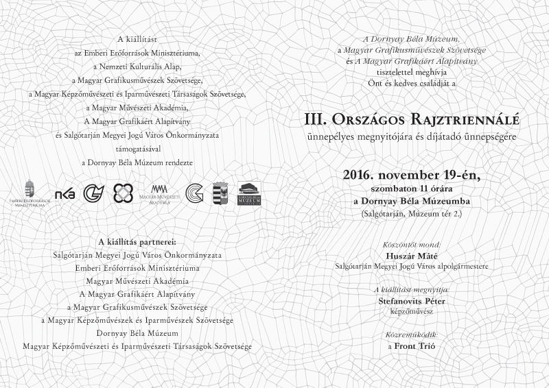 Pál Csaba, III. Országos Rajztriennálé, Salgótarján, 2016 Pál Csaba, Internum Tractus 03, 100×70 cm, rajz, drawing, mixed on paper III-Országos-Rajztriennálé 2016 Link: http://dornyaymuzeum.hu/iii-orszagos-rajztriennale-salgotarjan-2016/ Share this: Email a link to a friend (Opens in new window) Email Share on Facebook (Opens in new window) Facebook Share on Pinterest (Opens in new window) Pinterest Share on X (Opens in new window) X Print (Opens in new window) Print Share on Tumblr (Opens in new window) Tumblr Share on LinkedIn (Opens in new window) LinkedIn Share on instagram (Opens in new window) instagram More Share on X (Opens in new window) X Like Loading... Kapcsolódó bejegyzések Leave a comment Δ