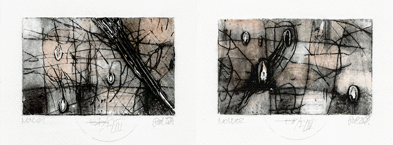 Csaba Pál, Now01,02, 7,5 x 20 cm, dry point, mixed, 2023