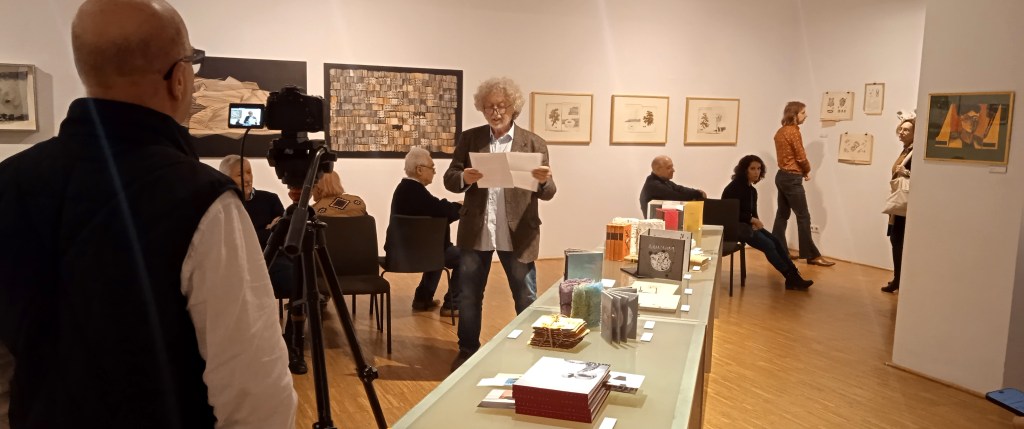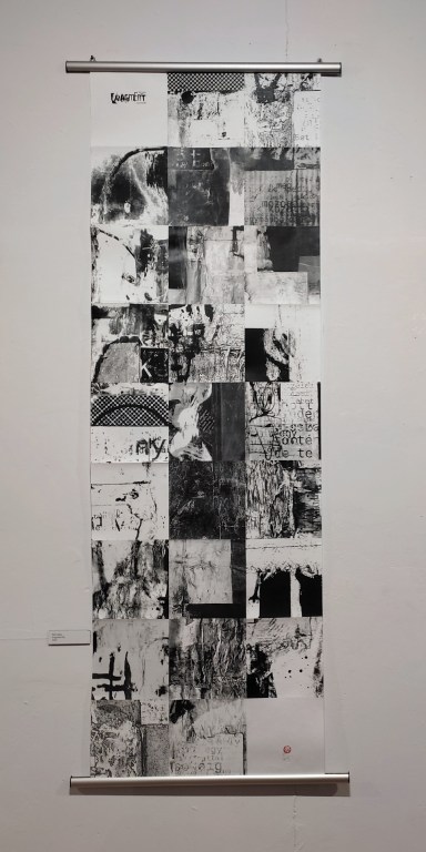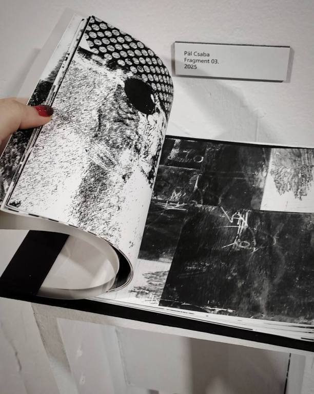 A Magyar Művészkönyvalkotók Társaságának, Nézőpont című csoportos kiállításán a Fugában, a Fragment 01, 02 03, műveimmel szerepeltem. A fragment három egységből álló installáció, Fragment 01, 50 x 50 cm, vegyes technika papír, Fragment 02, 180 x 70 cm, digitális nyomat, Fragment 03, digitális nyomat, 20 x 20 x 1 cm, silentbook, 2025,