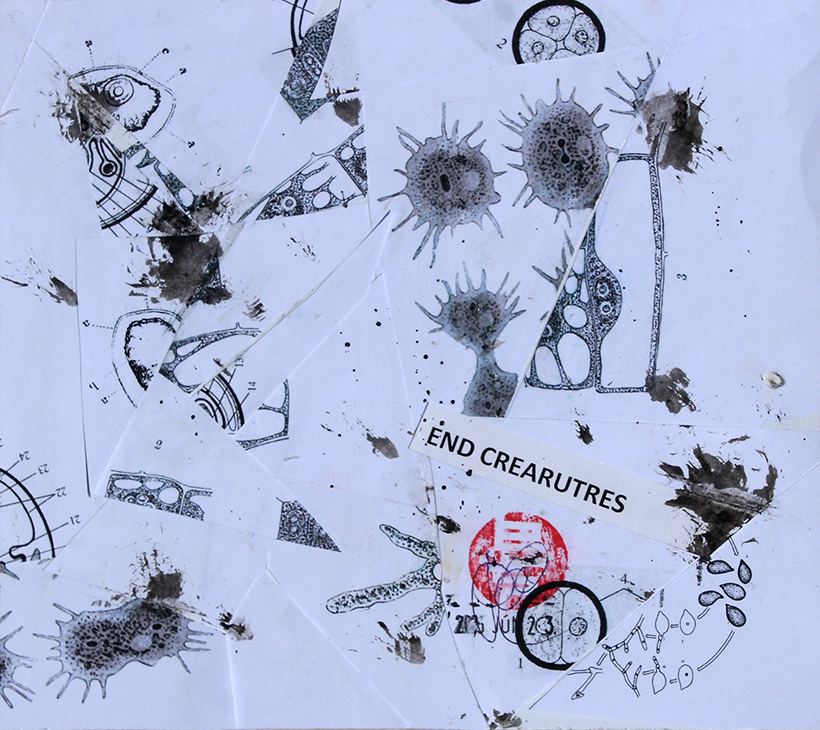 Csaba Pál, End creatures, artist book, 20 x20 cm, collage mixed on paper, 2025