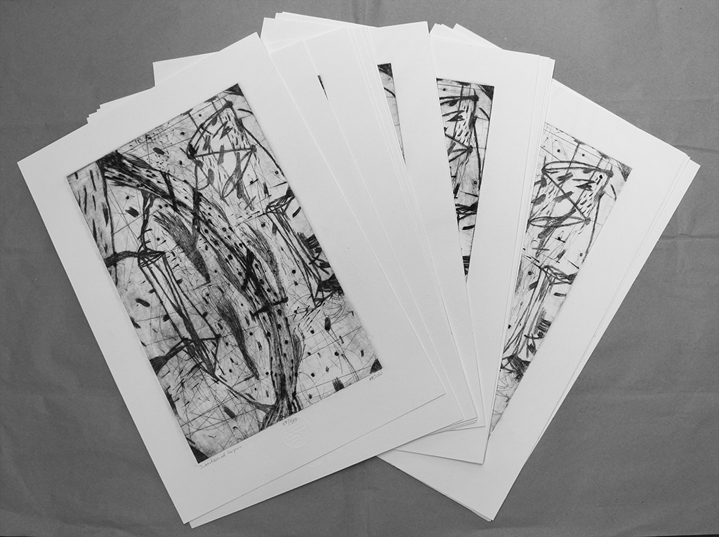 Csaba Pál, Interleaned layers, 1/17, 50 x 35 cm, 17 piece, drypoint, 2025