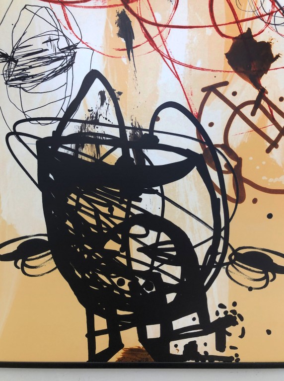 Ellenpontoz, nem pedig megtagad, képei nem a művészi destrukció apoteózisai. Nem, ezek a képek nem a lázadás terei, ugyan hol van már a tagadás jövőbe vetett hite. Pál Csaba amúgy is inkább épít, mint rombol. Bár az alkotófolyamat, s benne az ideális forma megtalálása involválja a rombolás gesztusát is. Knausgard a következőképpen ír erről a Harcom első kötetében. Az írói munkáról beszél, ám érdemes a képzőművészetre is vonatkoztatni a szavait. „Ha a stílus, a cselekmény, a téma ezek közül bármelyik felülkerekedik a formán, az eredmény silány lesz. …Ahhoz, hogy a irodalom/ mű létrejöhessen, előbb meg kell törni az erős témákat, és stílusokat. … Az alkotás / írás sokkal inkább a pusztításról szól, mint a létrehozásról.” Na, ebben az értelémben Csaba is rombol. Rombolva építkezik.