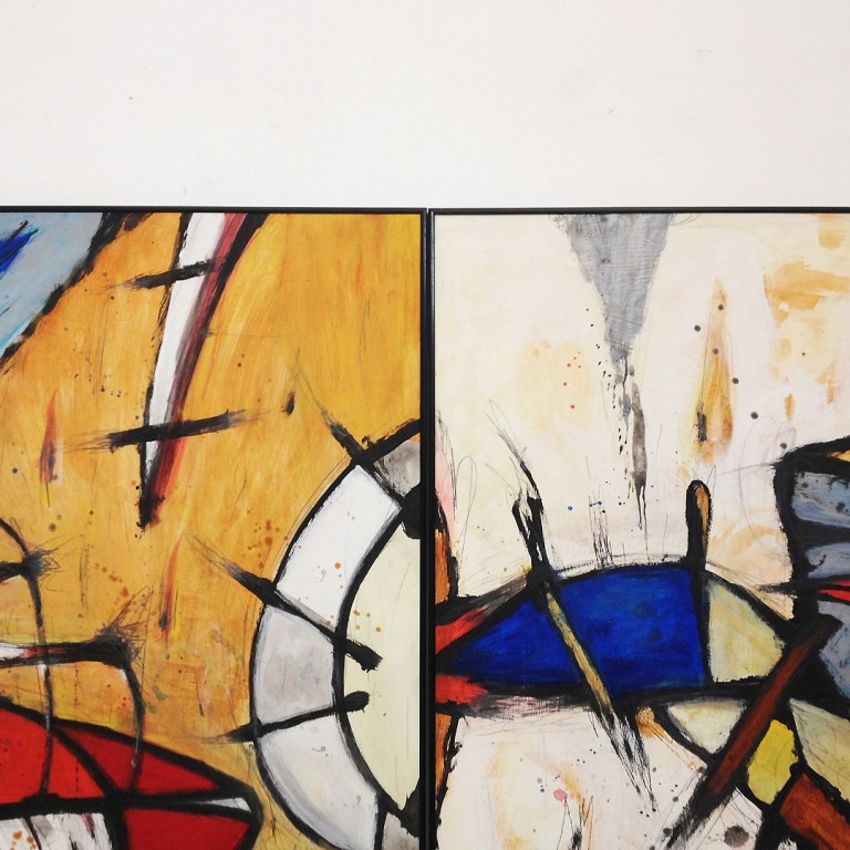 Vegyük történetesen Edward Hoppert, most volt kiállítása NY-ban, a Withney Múzeumban (március 5-n zárt), vagy Mácsai Istvánt, az ő kiállítása még látható április 2-ig a Kiscelliben. Két rokonítható mester. Képeikkel bejárhatjuk New York dokkjait, Budapest zárt kertjeit, a körfolyósokat, a nagyvárosokat, de a kisvárosokat itt is ott is, a vidék melankóliáját, a magányt, az ürességét. A képeik keretbe ágyazzák belső képeinket. Ni, csak, ismerem ezeket a hangulatokat, a városi tereket rendező fényeket, ahogy az embereket is a villamosról, a filmekből, miként a hiányuk sem idegen. A felemlegetett képek, képtípusok ellenpontozzák Pál Csaba művészetét, vagy Pál Csaba művészete ellenpontozza őket. Ám még sem teljesen idegenek egymásnak. Nevezhető helyzetük párhuzamosnak, ahogy az kiállítási címében elhangzik. Ugyanannak az útnak a két oldalán állnak. Természetesen a párhuzamosság a kiállítás immanens adottságaira is vonatkozik. Előbb konkrétumokra, konkrét művészek, konkrét műveire utaltunk, de Pál Csaba, a kép világot en bloc ellenpontozza. Teszi mindezt a képei rendszerével, képei kombinációival, a művek installálásával, a vad és szerethető alakzataival, figuráival, motívumaival, festői-grafikai jeleivel, a kvázi műfaj-és témaidézetekkel, színválasztásaival.