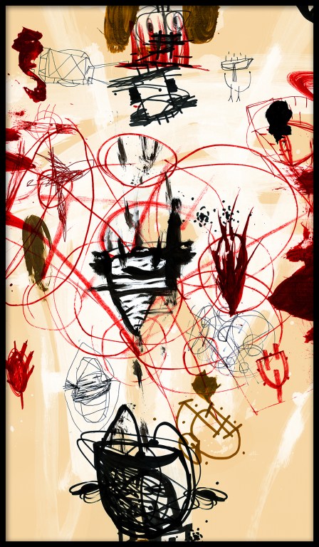 Pál Csaba képei nem akarják a valóságot leképezni, megragadni, de még csak felületesen átsatírozni sem, hagyva azért valami muníciót a képzeletnek. Képei távol tartják maguktól azoktól az izgalmas bűvészmutatványoktól, amikor a cilinderbe helyezett fehér galambból minipiton lesz. Pedig a mutatvány működik: igen, lehet szép egy bibircsókos, a ráncok mélyén feketehordalékot őrző férfi arc, ahogy az emberi testen ejtett vékony hasadékból kifröccsenő vér látványa. De Pál Csaba távoli reminszcenciákat őrző rajzai, rajzolatai, virtuóz látványa-töredékei, halmazai a nem kevésbé trükkös absztrakt, nonfiguratív rendszerekké sem kívánnak összeállni. Azt gondolom, Pál képeinek a hétköznapi észlelési formák komolyan vételére ösztökélnek. Szóval majdhogy: színről színre. Talán a teória erősebb fogást talál a munkákon. A mindent megérteni szándékozó tiszta ész, a kőkemény bicepszű elmélet, s tovább lépve, a műveknek tulajdonított mitikus képességek, a mű fedésében meghúzódó történetek, az életmű félig titkos adatbázisa talán okkupálhatja a műveket. Hiszen szeretünk a képek mélyén aranyra vagy más nemesfémre bukkanni. A kép mélyén Gombrich régi szövegeket, korabeli leveleket vagy mitológia történeteket, Panofsky meg a freudi tanokkal felvértezve szimbolikus jelentéseket talál. Közben, biztos, ami biztos, Raffaello a legjobb tudása szerint dolgozik a Vatikánban a Stanca della Segnaturan. De hátrább az agarakkal, szerényebben az iróniával, hiszen a szimbólumok teszik személyessé, ki- és elsajátíthatóvá a művet, ugyanakkor az sem tagadható, hogy egy műnek ne lenne kapcsolati hálója. A messziről jött embernek is jobban hiszünk, ha az orrunk elé nyomja útlevelét. De hagyjuk a két tudóst, vitatkozzanak kedvükre az égi library-ban.